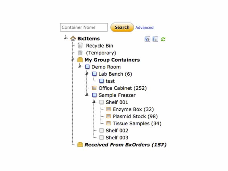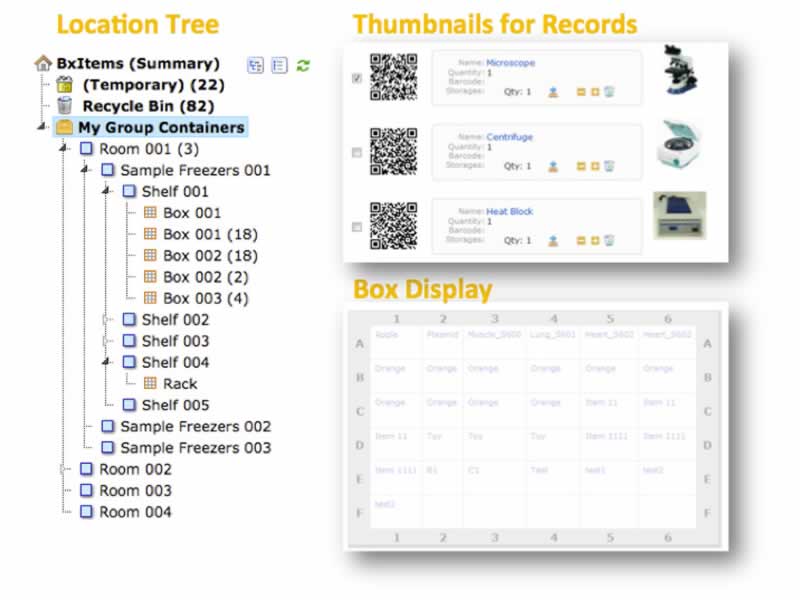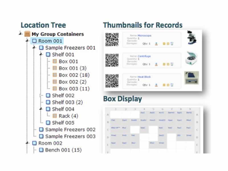 • User defined location tree mirrors lab layout and shows locations of freezers, boxes, shelves, etc.