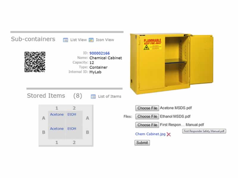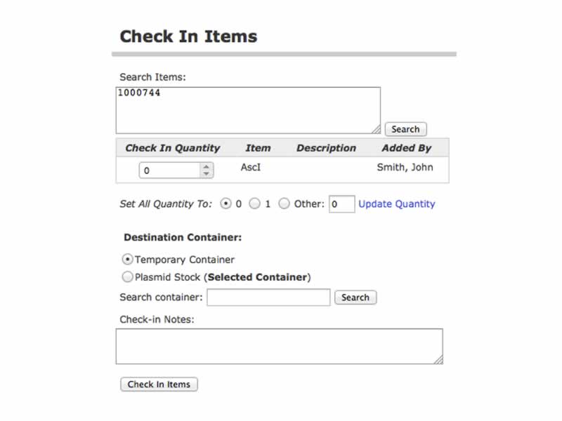 • System automatically assigns unique ID for every container or item; user can also enter additional barcodes