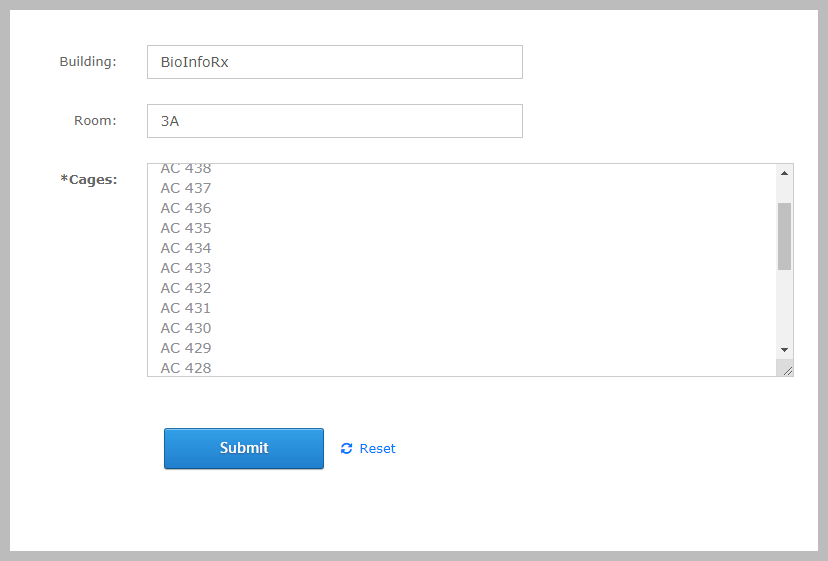 Create mLIMS Cage cards and set locations for all of your cages, such as building, room, and rack.